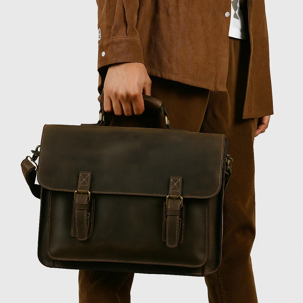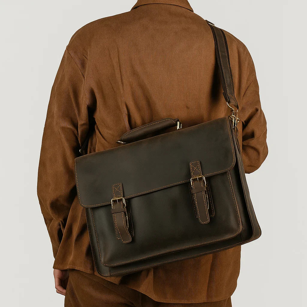 Le Drevalon | Porte-documents Héritage Structuré est l’accessoire idéal pour ceux qui souhaitent conjuguer élégance vintage et praticité moderne dans leurs déplacements professionnels ou personnels.