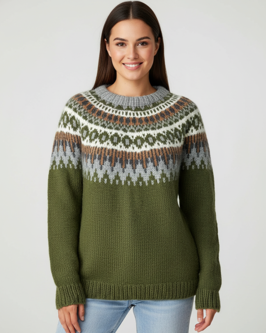 Stay Warm in the Silvanna | Women’s Nordic-Pattern Knitted Sweater