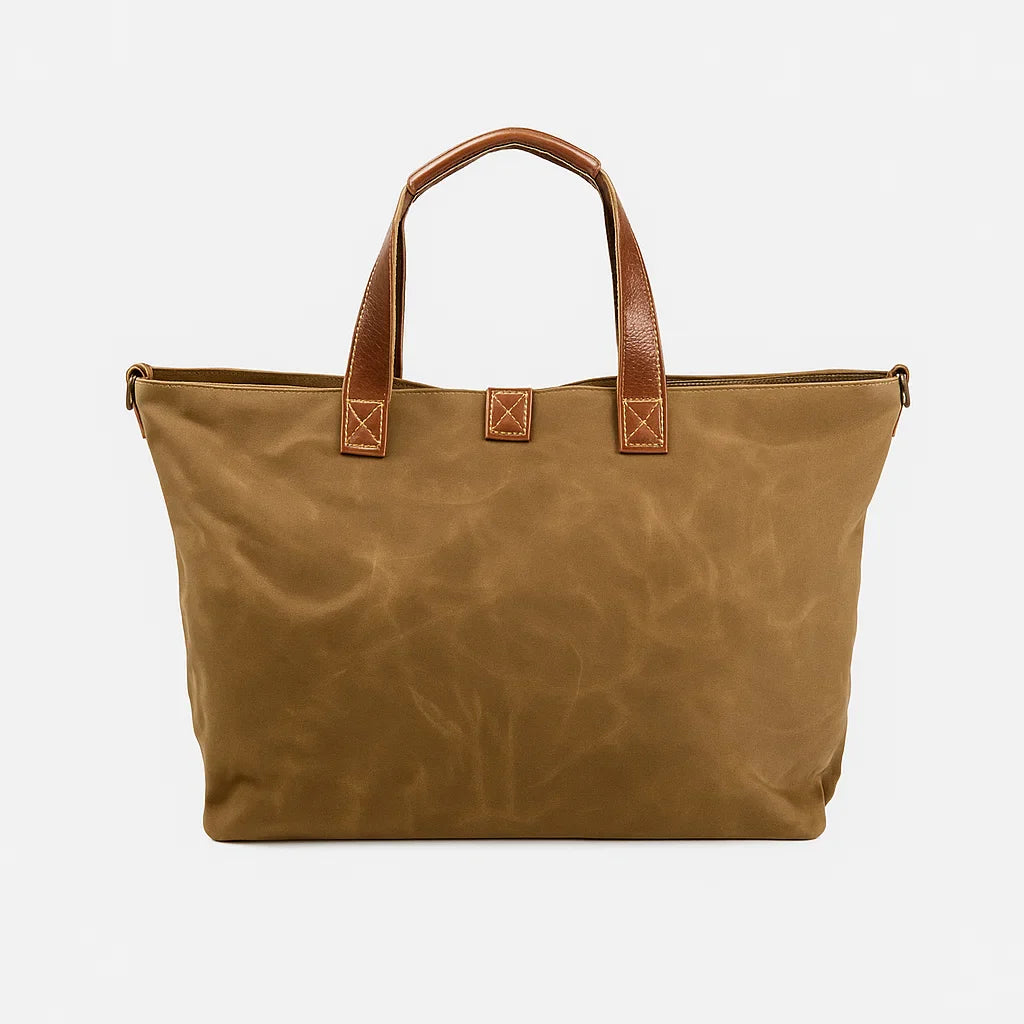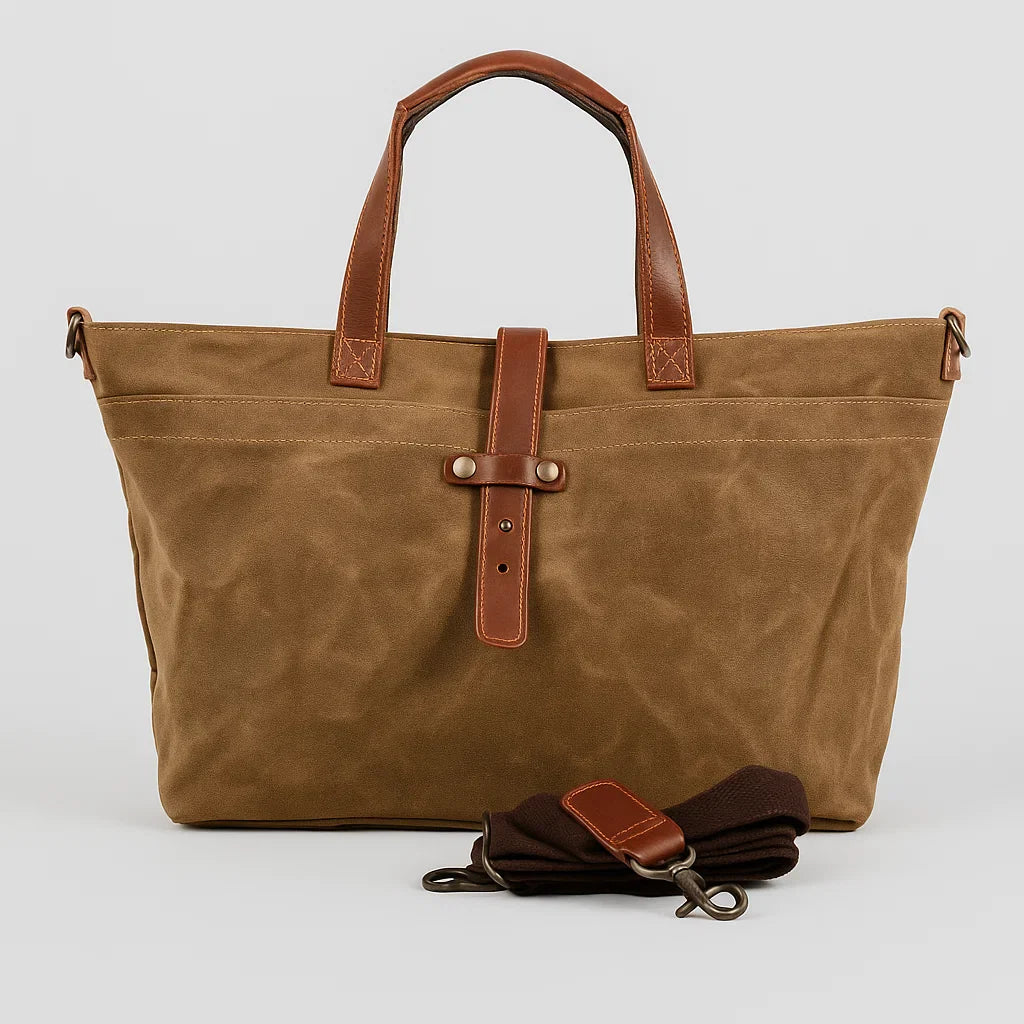 Fabriqué en toile cirée et cuir vegan, le Valcrune se distingue par sa résistance et son caractère évolutif : sa patine naturelle révèle toute sa personnalité avec le temps.