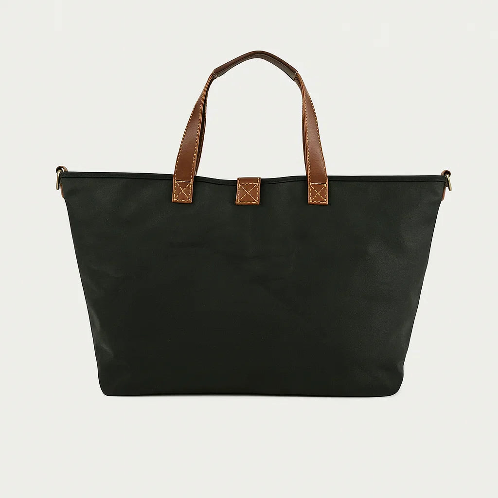 - Matières : Toile coton cirée tissée + cuir vegan